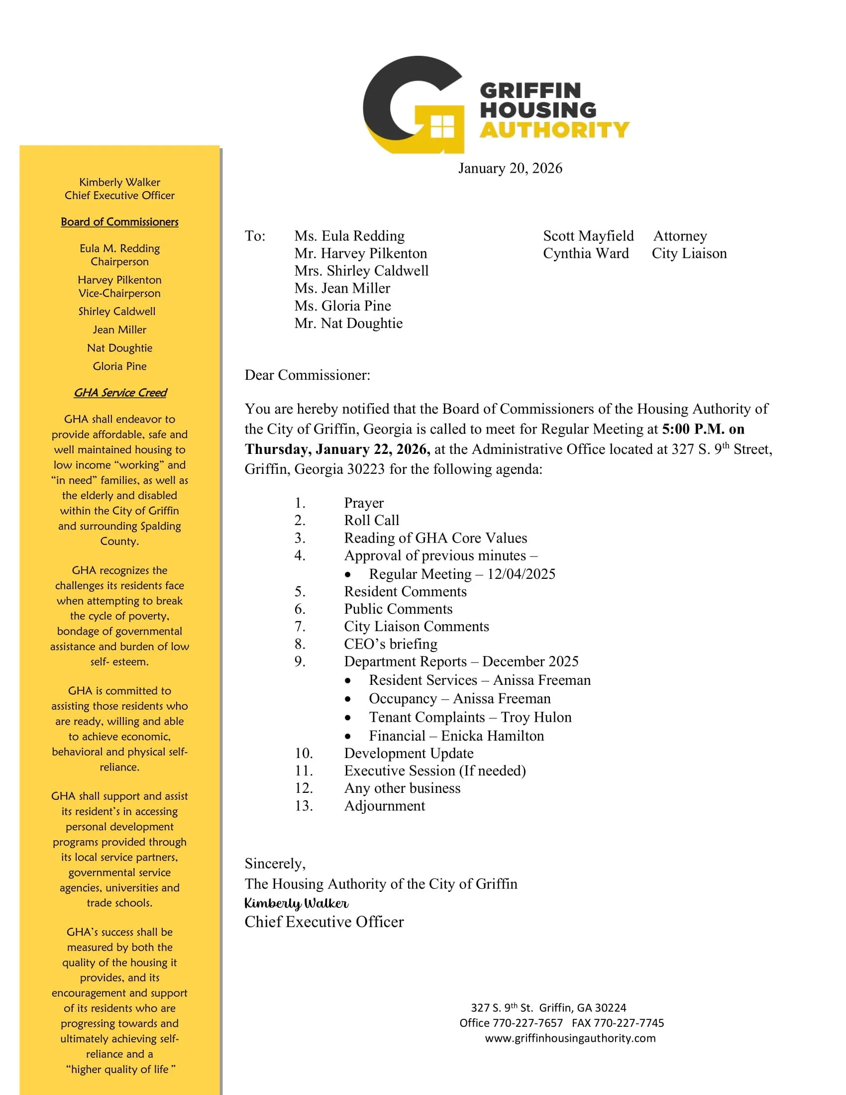 Monthly Board Agenda